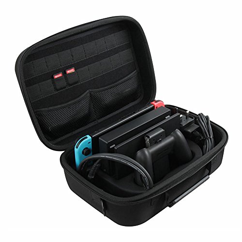 -. Feature : Adada Hard EVA Case for Nintendo Switch / The lining has a Soft protective lining inside. This lining effectively protects your gamepad from getting scratches and keeps them clean and clear. Hand Strap For keeping your devices safe and handy. / Material: Nylon; Color: Black; Internal Size: 11.5 * 8 * 4.2 inch / Case Only! (device and accessories are sold separately)