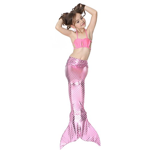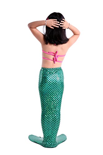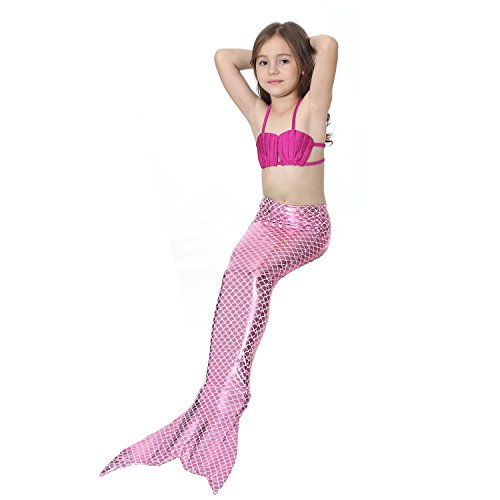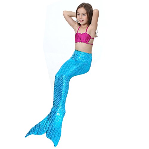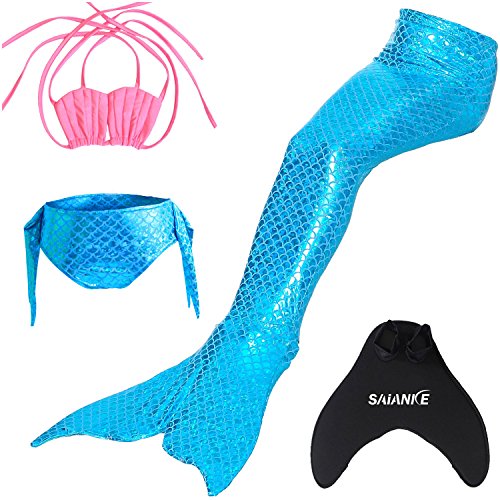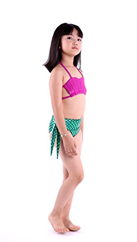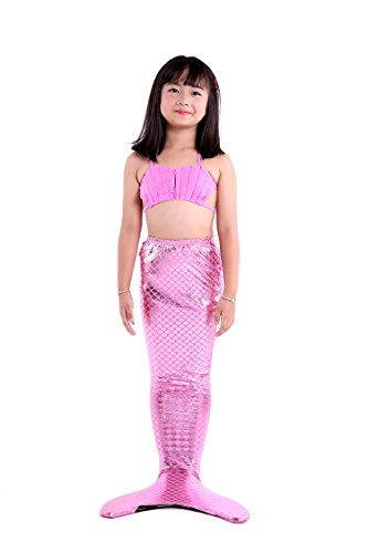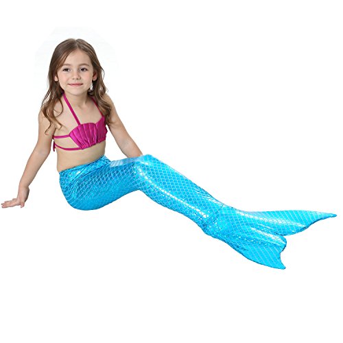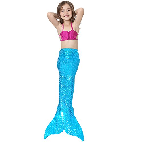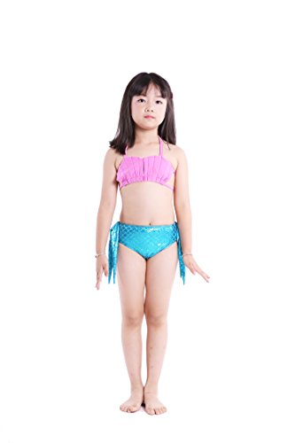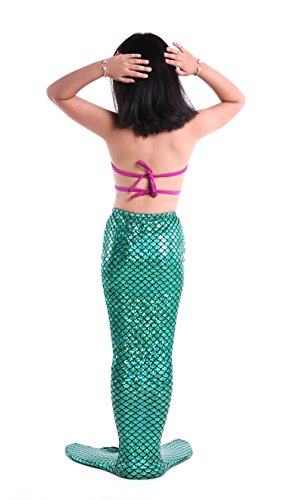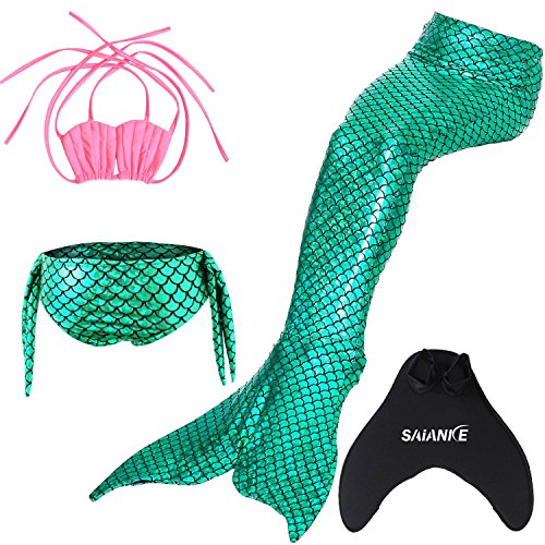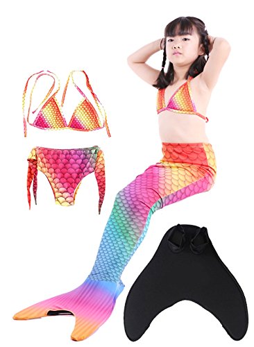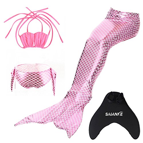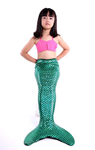 Binding : Misc. Product Description These are 4 pcs Swimming Set, includes the 1 Top, 1 Panties, 1 swimable tails 1 mono fin Size Chart(Please note that 1 cm = 0.39 inch) Child 6 (4-5 Years) Tail Length (From Waist to the short part end) 39.37 in, Waist 16.5 in, Hips 21.26 in Child 8 (6-8 Years) Tail Length (From Waist to the short part end) 41.34 in, Waist 18.1 in, Hips 22.05 in Child 10 (8-10 Years) Tail Length (From Waist to the short part end) 43.31 in, Waist 18.89 in, Hips 22.83 in Child 12 (10-12 Years) Tail Length (From Waist to the short part end) 45.28 in, Waist 19.67 in,Hips 23.62 in Washing Instructions Rinsing after use in cold water,squeezing excess water out gently. Do not twist the fabric,do not use detergent,bleach,or fabric softeners. Do not iron or dry clean,The bright shiny foil finish may fade after wear.all of the sparkly foil will come off if you run it through a washing machine! Monofin information: Comfortable and durable short blade swim fin. Great for Training and Open Water swims. Flippers use a soft foot pocket, and mid-sized blade with three channels for optimal movement of water during the kicking cycle. Features: 100% New and high quality. Easy to kick for extended snorkeling time. Lightweight, efficient and economical Rugged, durable construction Good thrust in an economical fin Channel Thrust: longitudinal inserts allow a controlled deformation of the fin blade while kicking. Specification: Material: TPR PP 0
