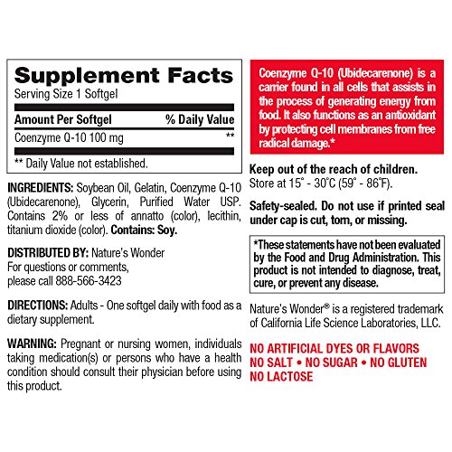 ReleaseDate : 2017-09-01 Studio : Nature's Wonder Publisher : Nature's Wonder Binding : Health and Beauty Product Description Nature's Wonder CoQ10 100mg. Coenzyme Q-10 (Ubidecarenone) is a carrier found in all cells that assists in the process of generating energy from food. It also functions as an antioxidant by protecting cell membranes from free radical damage. 0