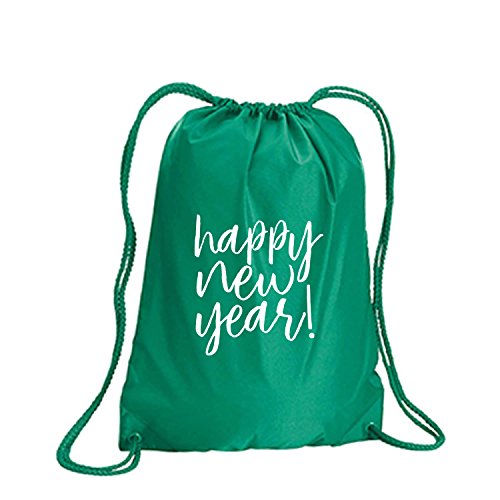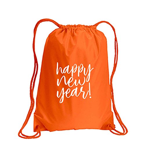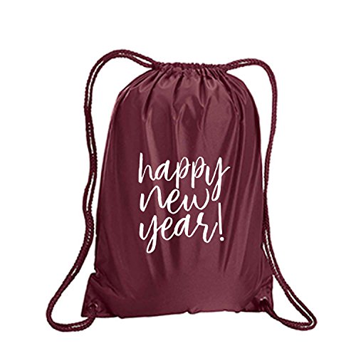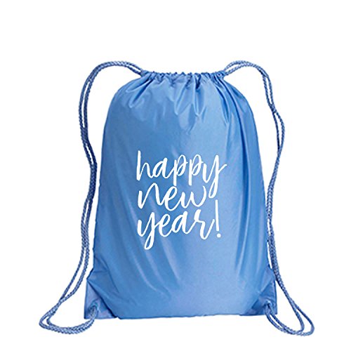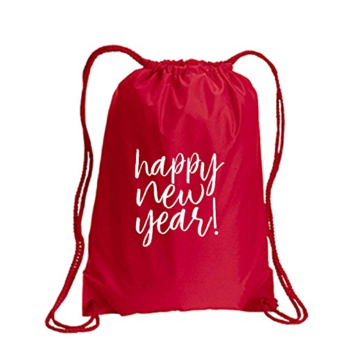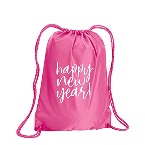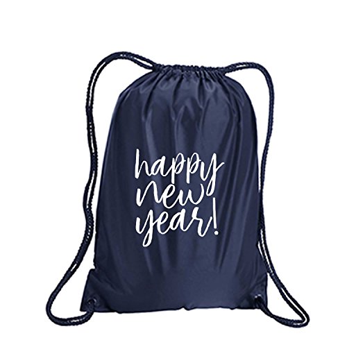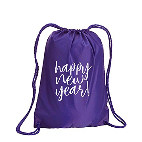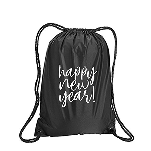 Product Description This durable and stylish nylon tote features "Happy New Year!" on a cinch pack tote with white ink. Bag comes in small and large sizes and is made of a durable 210 Denier nylon and has color-matched draw cords. Printed in the USA on an imported bag. 0