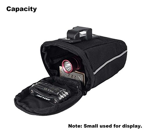 Studio : camgo Publisher : camgo Product Description Features Fit Secured in the Place Strap-On mounting design allowing the saddle bag to fit and be secured in place on most of the bicycle seats and seat posts. Always Safety first High quality reflective material and Velcro strap loop to upgrade your riding safety. Room for All the Essentials A perfect place for your cell phone, wallet, tire tools, mini pump, bike lock, and etc. Easy to Access Big zippered opening mouth design for riders' convenience Taillight Compatible With taillight hanger on the back, cyclists can easily attach the taillight on the saddle bag, ensuring night time riding safety. Package Included: - 1x Bicycle Saddle Bag/ Bicycle Bike Bag /Under Seat Packs Seat Bag 0