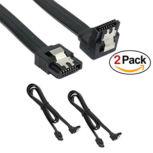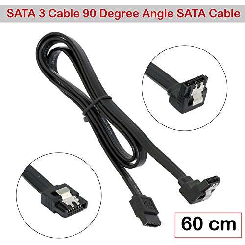 (2 x SATA 3 Data Cable) SATA III (SATA 3) cable black (60cm) with Locking Latch straight to Right Angle 90 Degree | compatible up to S-ATA/600 | 1,5GBs/3GBs/6GBs | S-ATA Cable l and Sata II