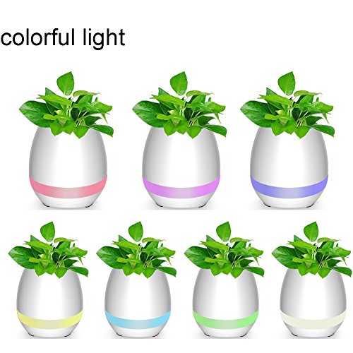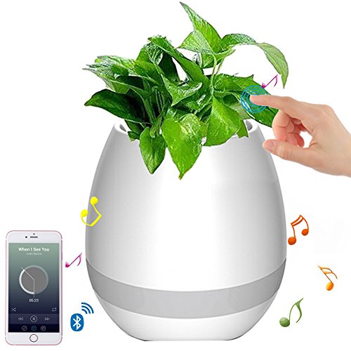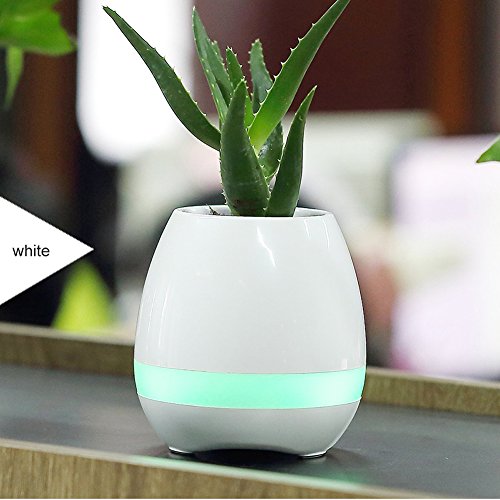 EIGIIS Smart Music Flowerpot With Bluetooth Speaker Touch Sensor Music Playing LED Night Light(White)