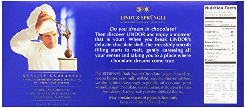 Perfectly balanced dark chocolate offers a deeply indulgent premium chocolate experience. A delicate dark chocolate shell enrobes an irresistibly smooth dark chocolate center. LINDOR Dark Chocolate, paired with a hot mug of coffee, offers a moment of everyday luxury that everyone deserves. Send a gift of these truffles to your favorite dark chocolate lover suggesting just this. Lindt chocolate embodies the passion and expert craftsmanship of its Lindt Master Swiss Chocolatiers. Lindt delivers a unique chocolate experience offering a distinctly smooth and rich, gourmet taste.Feature