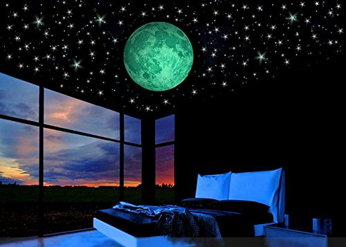 - BEAUTIFUL & LIFELIKE NIGHT UNDER THE STARS – form your own magical galaxies with glowing stars and a large florescent full moon to create natural shimmering constellations which add charm to any room in your home.