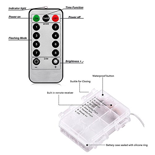 - Length of the wire light is 5.3 meters/17.4 feet with 50 LED (Battery pack to first light: 1 ft., Distance between lights: 4 inch, Globe dia: 0.68 Inch)