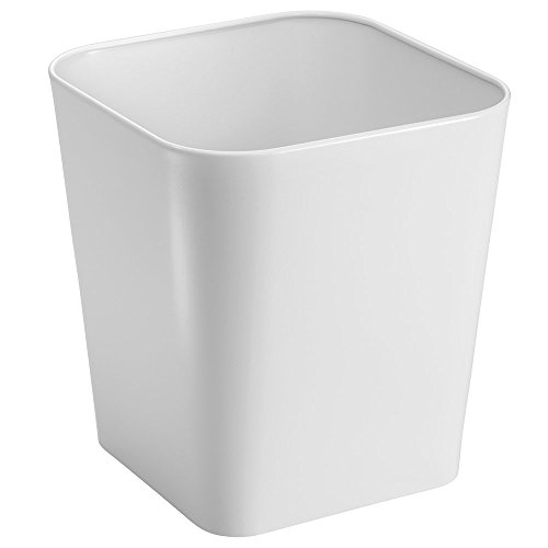 mDesign Metal Square Small Trash Can Wastebasket, Garbage Container Bin for Bathrooms, Powder Rooms, Kitchens, Home Offices - Solid Steel Construction in White