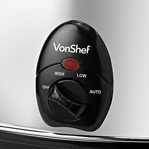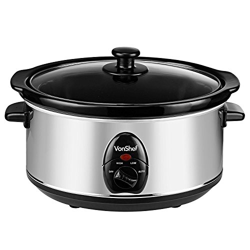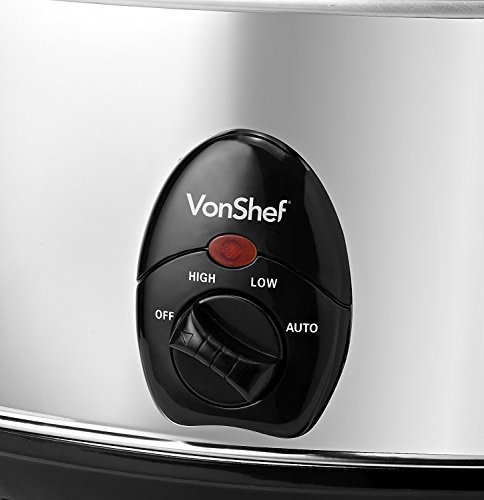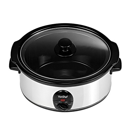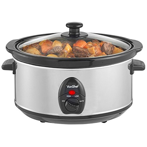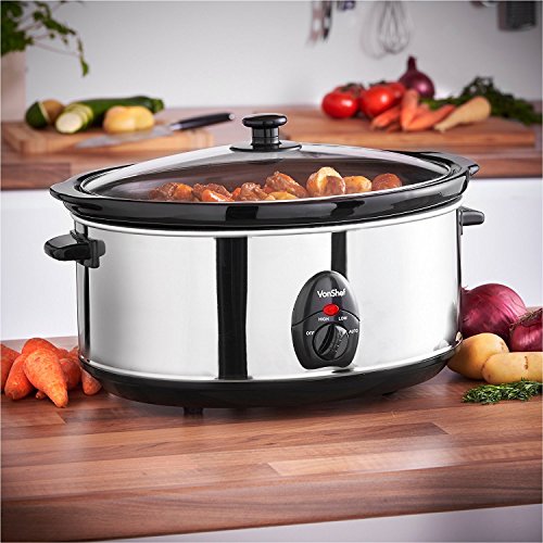 VonShef 220 240 Volts Slow Cooker Crockpot 6.5 Liter Large Size Stainless Steel; Bundle with Dynastar plug adapter. (NOT FOR USA)