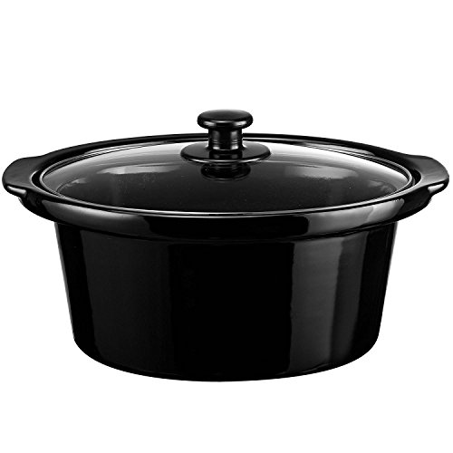 VonShef 220 240 Volts Slow Cooker Crockpot 3.5 Liter Small Size Stainless Steel; Removable Oval Pot, Toughened Glass Lid; Bundle with Dynastar plug adapter. 13010