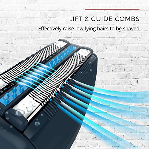 Lift & Guide Combs - The combs sit just outside the foils to lift low-lying hairs and guide them into the trimmer blades, helping to reduce the need for multiple passes over the same spot