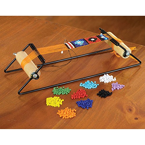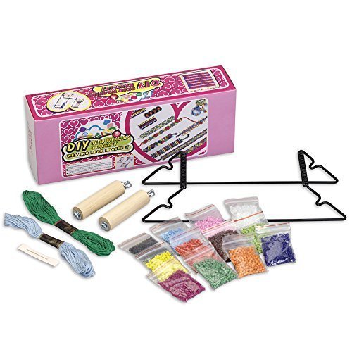 The Bead Weaving Loom Kit is a wood and metal bead loom set for creating patterned bracelets, necklaces and more. This easy to use jewelry maker lets you design colorful, personalized gifts for friends and family. Weave different color beads together to create interesting patterns and designs. Bead Weaving Loom Kit includes the following: Wood and metal loom, Over 1000 glass seed beads in multiple colors, A colorful variety of cords, and Illustrated instruction booklet. Makes a great gift for kids for the holidays!Feature