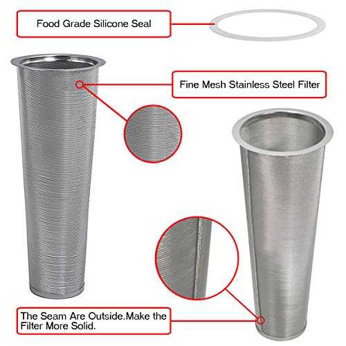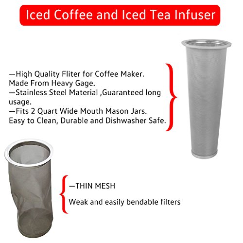 HIGH QUALITY +NEW TASTE-The filter is made from heavy Gage, food grade stainless steel wire that will not bend or dent. Other coffee makers use thin, easily damaged .Traditional hot brewing releases acids and oils that result in a bitter flavor but this new cold brew filter, only natural flavors are extracted.