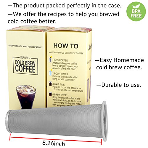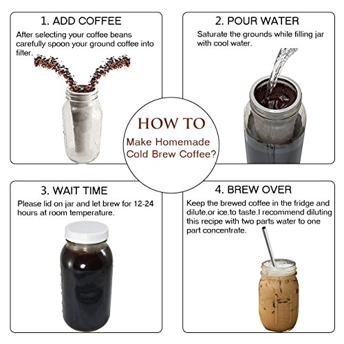 Cold Brew Coffee Filters Iced Coffee And Iced Tea Maker Mason Jar Infuser Make Your Own Cold Brewed Coffee At Home (2 Quart ,64 oz )