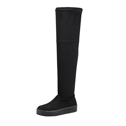 (Forever-Link)/Women's/Boots/DIRECT FROM USA/Forever-Link Women's Sexy Black Round Toe Thigh High Platform Flat Boots Faux Suede Regan-45