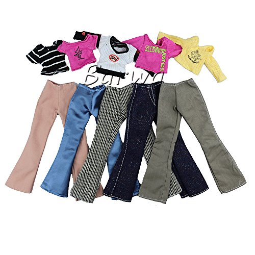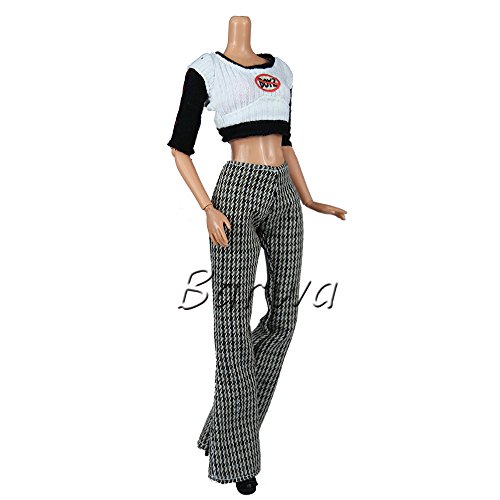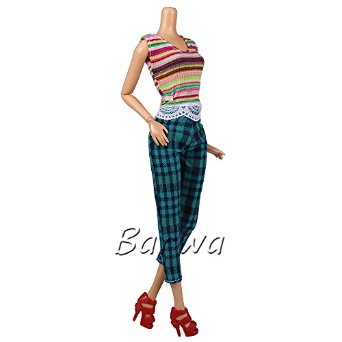 BARWA 5 SETS HANDMADE BLOUSE WITH TROUSERS PANTS FOR BARBIE DOLL BARBIE CLOTHES XMAS GIFT