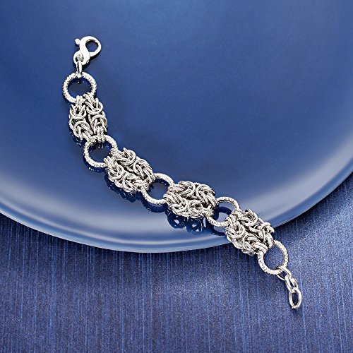 Known for exceptional quality and prices, Ross-Simons specializes in everyday luxuries. Using expert techniques, our Italian silversmiths reinvent a traditional look with this link bracelet. Textured circles alternate with Byzantine links. Includes a 1/2" extender. Lobster clasp, sterling silver link bracelet. Each Ross-Simons item arrives in a fine jewelry presentation box. Shop Ross-Simons jewelry risk-free as all items include a 30-day, 100% money-back guarantee.Feature