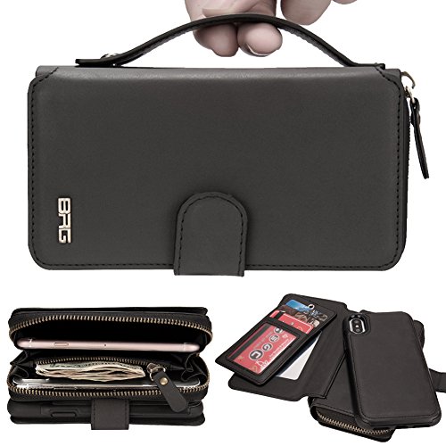 -. Title : iPhoneX / iPhone10 Wallet Cace, JUZI Zipper Wallet Magnetic-Closer Flip Leather Case with Card Slots Wrist Hand Strap Detachable Removable Multifunctional Cover for iPhone X / iPhone 10 (Black)