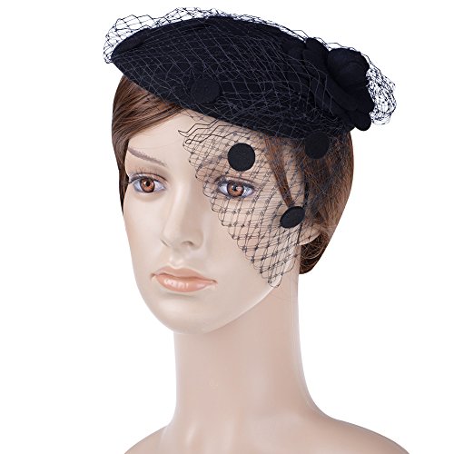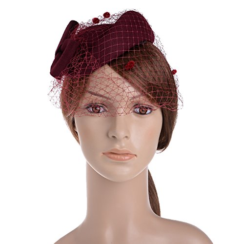 -. Title : Vbiger Women's Fascinator Wool Felt Pillbox Hat Cocktail Party Wedding Bow Veil