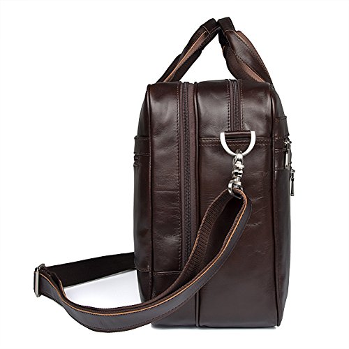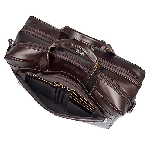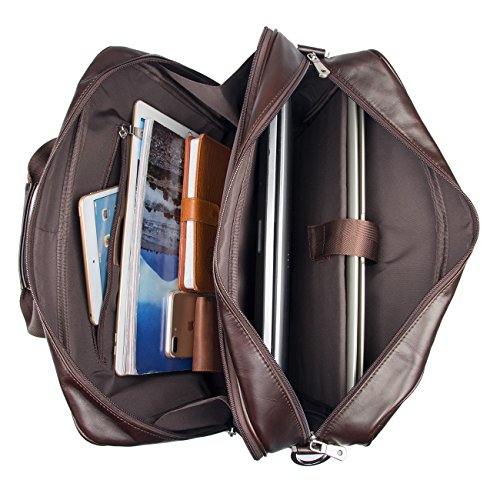 Product Description This classic style laptop bag, made from genuine soft nappa leather, is intended for both personal and professional use. It's rugged natural finish stands out among cheaper leather bags that hide these characteristics. Expertly crafted using heavy duty synthetic thread and designed to last. Please Note: Because this laptop bag is made with authentic genuine leather and is sealed during shipping, the leather may have a strong smell upon opening the package. This is normal. Once opened the smell will fade after a few hours. Please be aware that the dimensions of this bag are as follows: Length 17"(43cm) x Width 6.5"(16.5cm) x Height 12"(30.5cm). 0