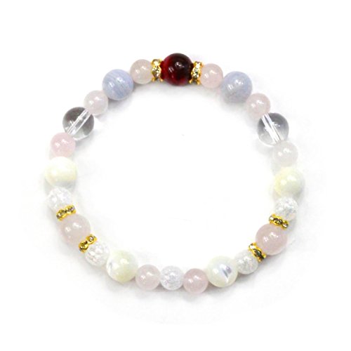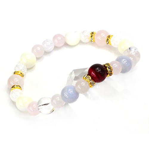 ◆사용석…핑크 타이거 아이:약8mm,블루레이스:약8mm,로즈 쿼츠:약8mm6mm,쿼츠:약8mm,마더 오브 펄:약8mm,크랙 쿼츠:약6mm ◆심재…신축성 실리콘 고무 *론 델 파트는 큐빅 지르코니아와 놋쇠제입니다.