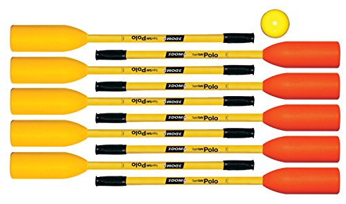 Studio : Dom Sports And Games Publisher : Dom Sports And Games Binding : Office Product Product Description DOM SuperSafe Polo Stick measuring 32 in, features a traditional head design and a curved back. It provides optimum control on soft balls with the internal structure designed to keep the hitting surface stiff. Stick with a polyethylene shaft is oval shaped and reinforced with two structural 'I' beams, allowing for total flexibility without shaft fatigue. Stick also features an unique anti-slip butt end and it effectively places the protective padding on the stick, instead of on the legs of the players. Polo is a perfect alternative to traditional hockey. Set includes 10 sticks and (1) 4 in ball. Includes: (10) 32 in L Stick, (1) 4 in Ball 0