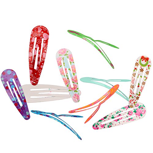 Colors : Translucent plastic bags beautifully packaged of 40 pcs, These hairpins have 20 different color patterns, including heart-shaped. Butterfly type. Dot type. Flowers, etc. Size:Each clip is about 2" in length, 0.6" in width. Material:Made by metal and covered by smooth material on the surface, very durable and safe for use. Packing:20 pairs in total, 2 pairs clipped on a paper card Perfect for: color patterns are the same as the picture, match most outfits for baby, girls, kids.