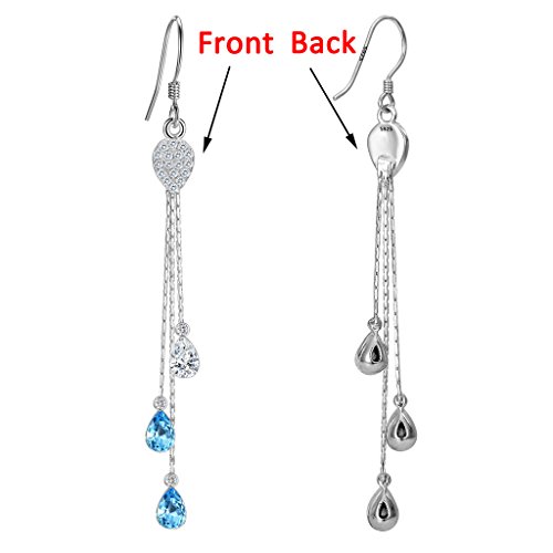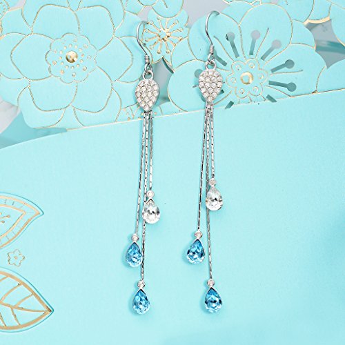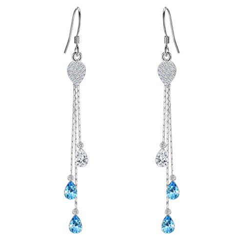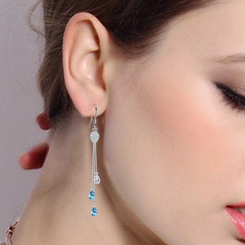 Swarovski® Crystals Color: Aquamarine Color, CZ Color: Clear; Earring Length: 3in, Earring Width: 0.4in; Each Earring Weight: 2g