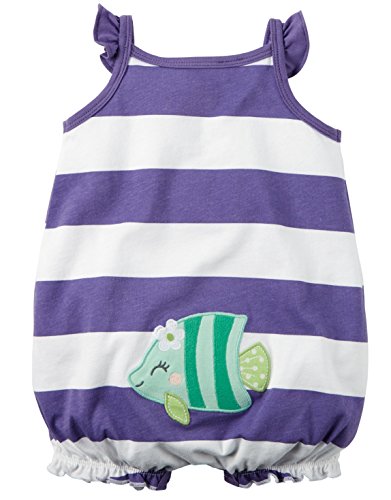 -. Title : Carter's Baby Girls 1-piece Appliqué Snap-Up Romper