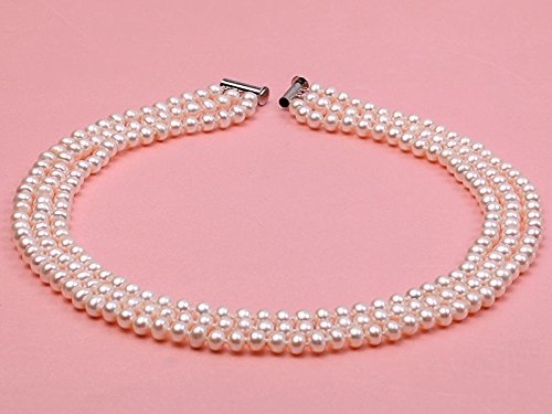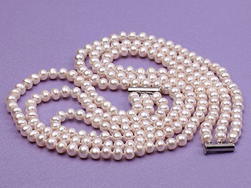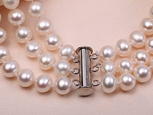 Description *Triple-strands of 8-9mm flaty round white freshwater pearls, with the length of 20~22 inches,ended with a white gilt clasp of fine workmanship.