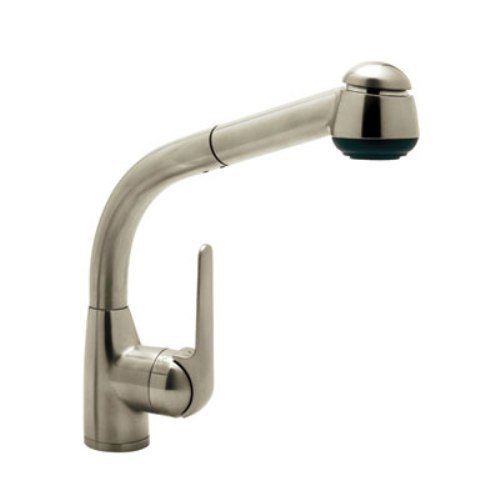 Rohl R7913STN Single Hole Side Metal Lever De Lux Kitchen Pullout Faucet with 9-5/8-Inch Reach Long Handspray and Hose, Satin Nickel