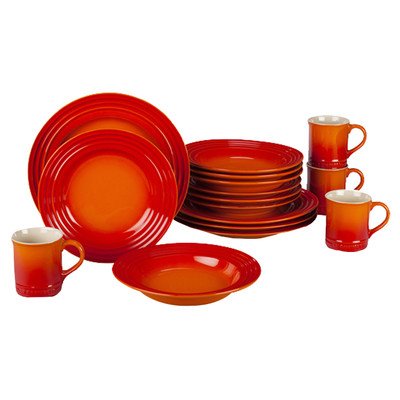 ReleaseDate : 2011-07-01 Studio : Le Creuset Publisher : Le Creuset Binding : Kitchen Product Description Featuring four complete settings of mugs, soup bowls, salad plates and dinner plates, the 16 piece stoneware dinnerware set makes a beautiful addition to any holiday spread or weeknight meal. Each piece of Le Creuset dinnerware is crafted in the same careful process as all Le Creuset stoneware ? with a colorful, durable exterior enamel that matches other stoneware flawlessly while protecting from utensil marks and scratches. Every plate, bowl and mug is designed to complement any collection of stoneware, and is finished with Le Creuset’s signature three-ring accent along the exterior.