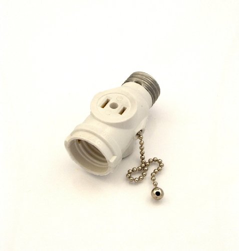 Leviton 1406-W 660 Watt, 125 Volt, Two Outlet With Pull Chain Socket Adapter, White