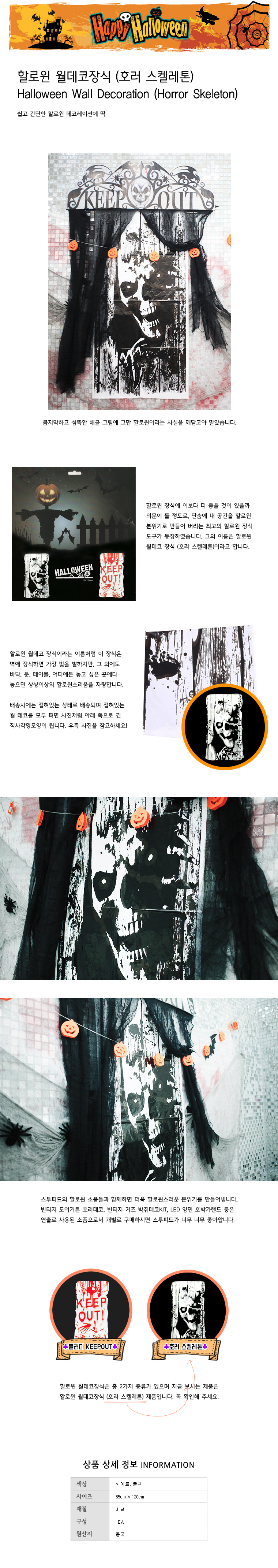 할로윈 월데코장식 (호러 스켈레톤)