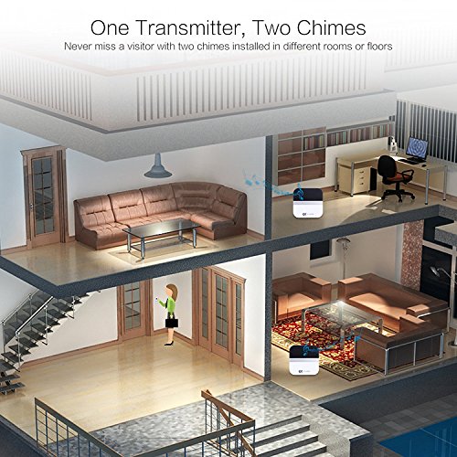 ULTRA EASY INSTALLATION: Get this doorbell up and running within minutes - unlike traditional models, there's NO fancy wiring required. Its 100% wireless design makes for easy setup and installation, so you can begin using it almost INSTANTLY. Plus, the transmitter is able to pair with not just one, but TWO doorbells AT ONCE for even more convenience.