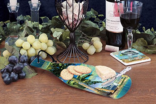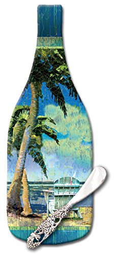 CounterArt Day at The Beach Wine Bottle Shaped Glass Cheese Board with Spreader Knife, 12-1/2"