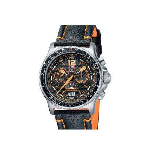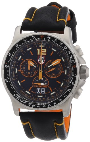 -. Title : Luminox F-35 Lightning II Chronograph Orange Black Leather Mens Watch 9388