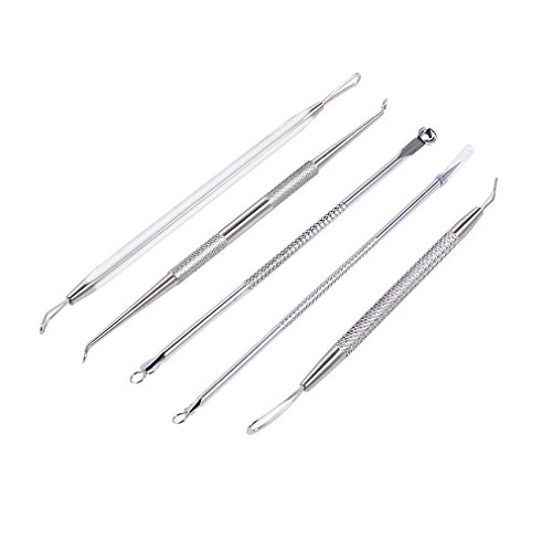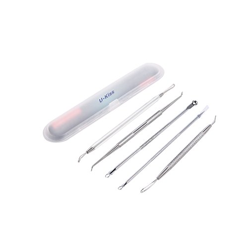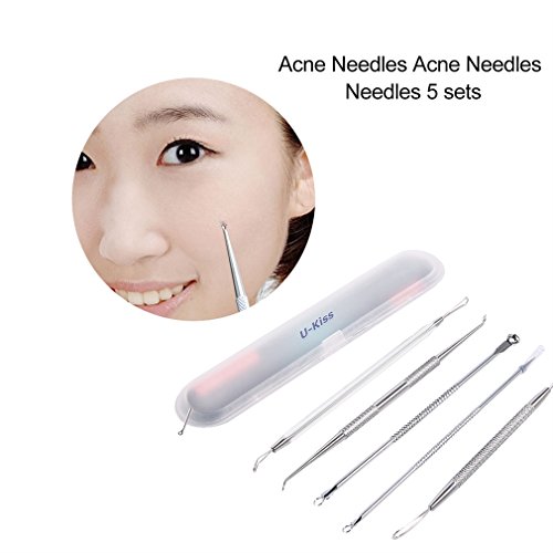 U-Kiss 5 Pcs Healthy Blackhead and Blemish Remover Acne Needles Kit Removing for Risk Free Nose Face Skin with Metal Case