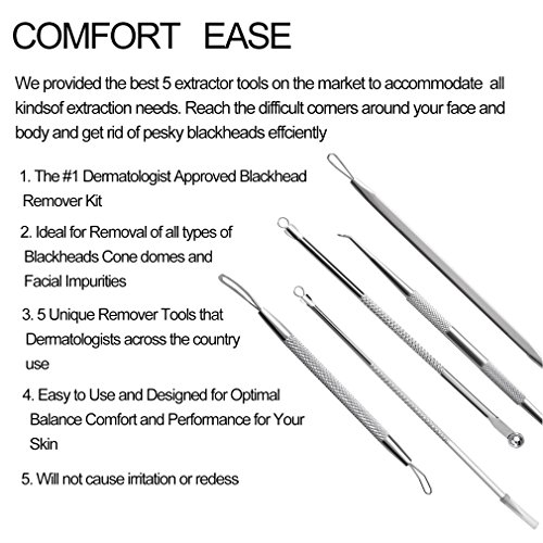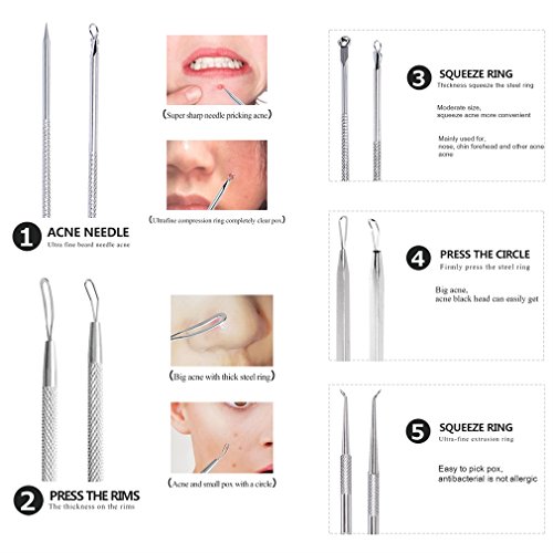 MUTIL-FUNCTION: We provided 5 different practical blackhead remover kit help remove blackheads,acne and various blemishes to keep your face clean and smooth.