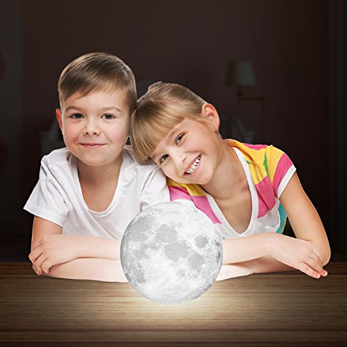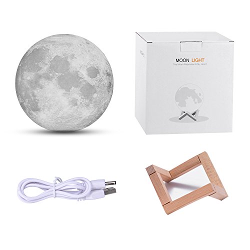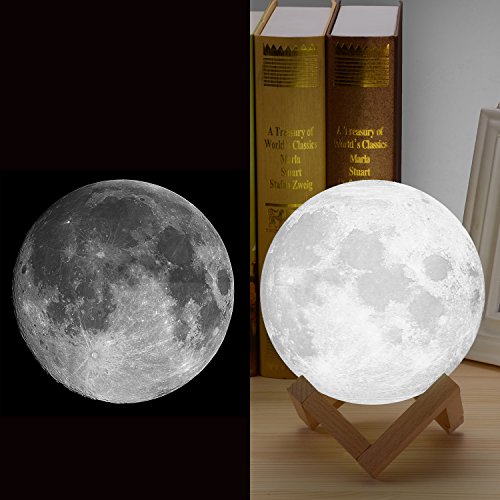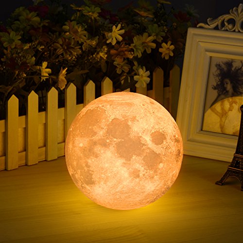- 3D PRINTING MOON LAMP. The nightstand lamps is delicately crafted with 3D printing technology, restores the real appearance of the moon vividly. The moon has been a divine and enchanting symbol, it brings you lucky and happiness. unique moon shape makes the room full of fun
