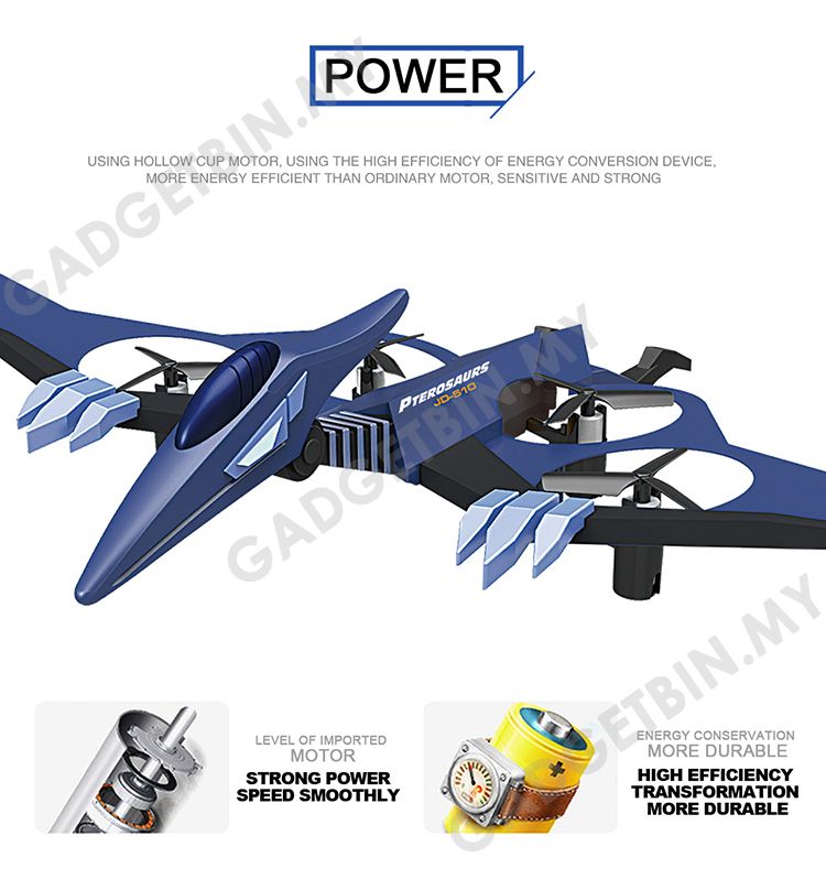 JXD No.511 features for its super cool and unique design, you won't disappointed with this Pterosaurs. Don't be afraid of collision! Strive for your airspace and enjoy it!