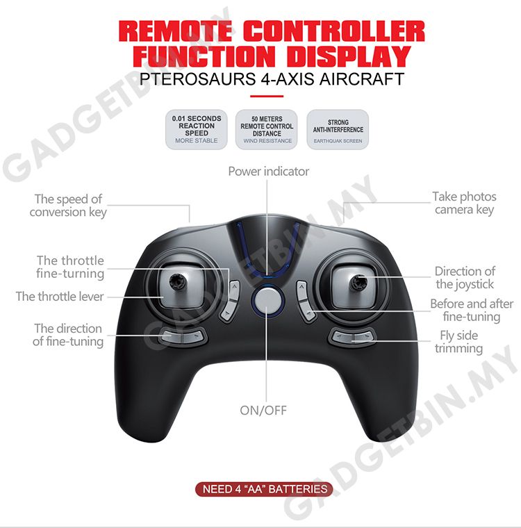Transmitter Power: 4 x 1.5V AA battery(not included)