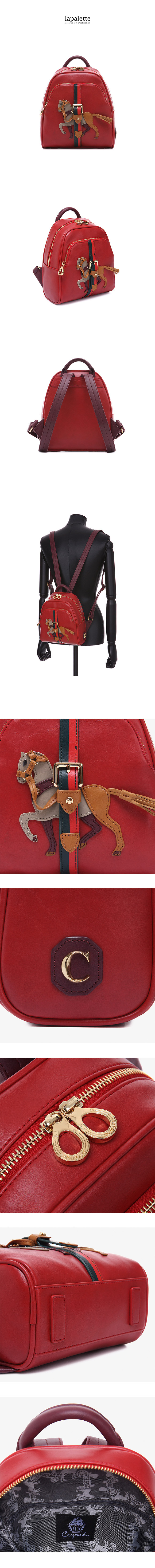 lapalette introduces a renewal version of brand bestselling ‘BELTED HORSE LINE’ in a vintage color way and details. The horse patch and silk P.R.Inted belt detail complete its unique style. Added a front zip pocket on this basic shape of backpack to present cute casual mood. Two-way zip closure assures convenient use and safe carry. Fully adjustable straps are perfect to cover wide range of user age. (Possible to be carried by a kid) A great accent for both easy casual outfits and cute girlish outfits. |