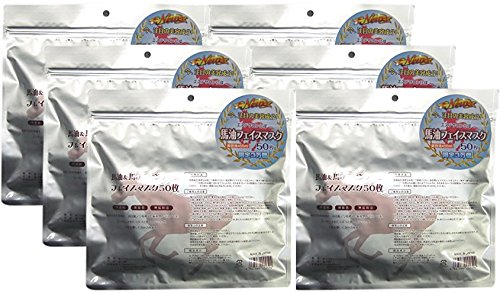 -. Feature : 今注目の美容成分「馬油&馬プラセンタ配合」のフェイスマスク / 無着色、無香料、鉱物油フリーの 国内で製造された安心の処方!! / 原産国:日本 / 内容量:50枚入り(期間限定)×6袋