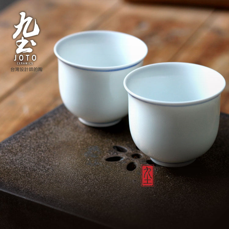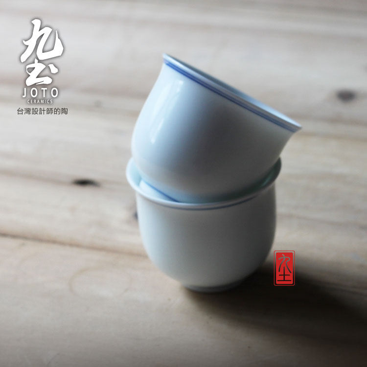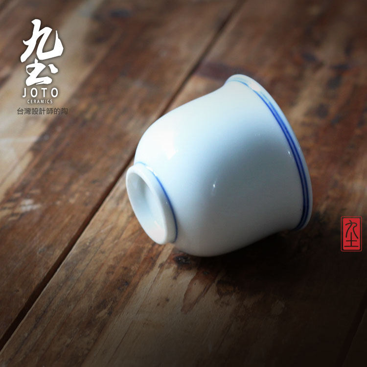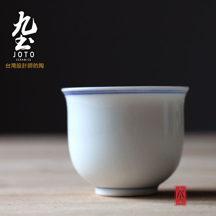 人气素雅古朴禪意日式手繪青花雙圈白瓷普洱品茗茶功夫杯