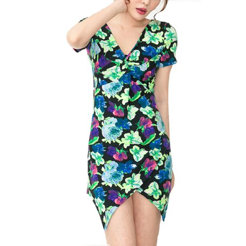 Feature : Irregular Hem, Short Sleeve, Crossover Front / V Neck, Floral Prints, Casual Dress / Package Content: 1 x Dress / Material: Polyester; Net Weight: 200g