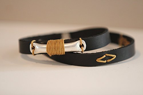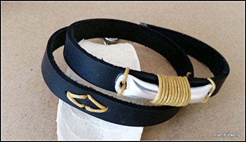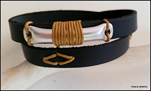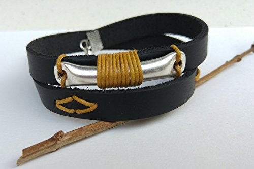 -. Title : Hipster double wrap leather bracelet with bold tube decoration