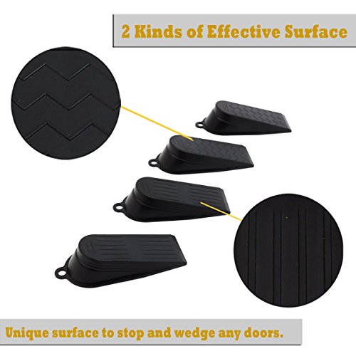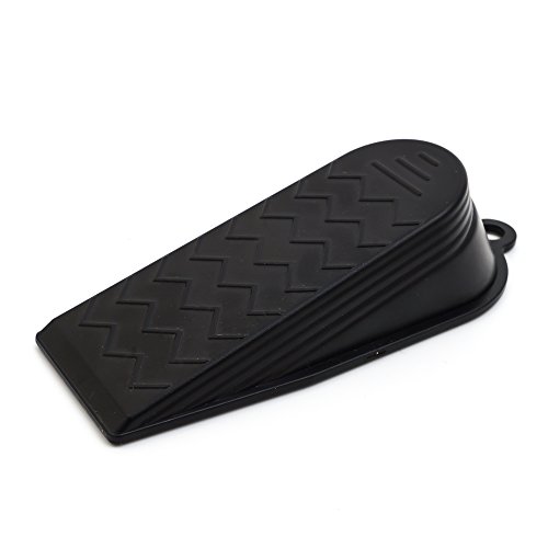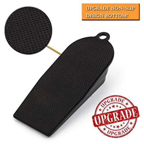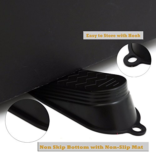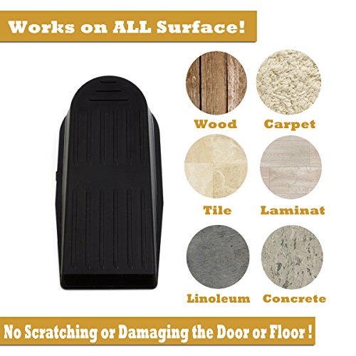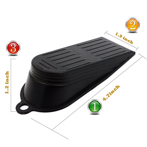 No more worry about slamming doors! These door stoppers will keep doors securely open, ensuring that you, and your family, kids, babies, pets remain SAFE from slamming doors, and even you when carrying in the groceries! Work well on all surfaces. Gooray doorstops will not scratch or damage floor surfaces, it is great value for money and perfect for a gift. Size: Weight: Material: ABS Color: blackFeature