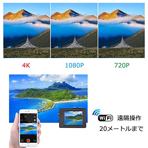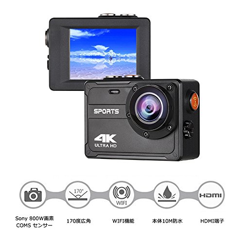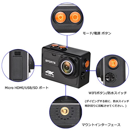 원본상품명: COOCHEER 4K アクションカメラ 本?10M防水 1600万?素 2インチ液晶?面 WiFi搭載 170度?角レンズ 手ぶれ補正 64GBカ?ドまで?? HDMI出力 ダイビング/サ?フィン/