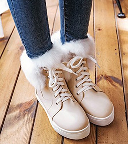 Binding : Apparel Product Description Winter is coming! Do you want a pair of boots both of fashion and warm? This pair of snow boots is a perfect choice. This lovely shoes features lace up closure and round toe. With their furry faux fur in the upper, you will look more elegant and cute. The faux fur lined will warm you all winter. The sole is made of good rubber. You will feel comfy in their soft bottom. The heels measure 2.4 inches. So you will not feel tired even walking all day long. They are of high quality and durable. Just pick them to show your beauty. 0