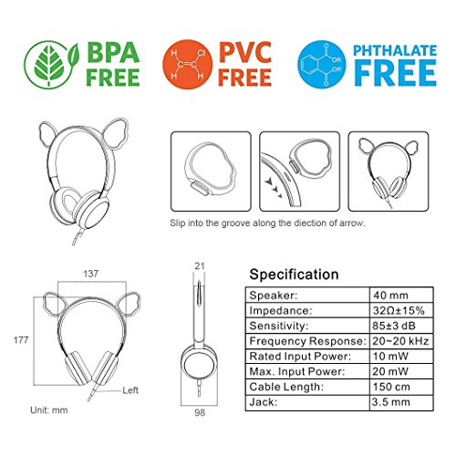 Kids Headphones are made of safe, hypoallergenic materials including BPA-free plastics and food-grade silicone, use a stainless steel adjustable headband and super soft earpad cushions to provide a comfortable fit for kids aged 3 years up.